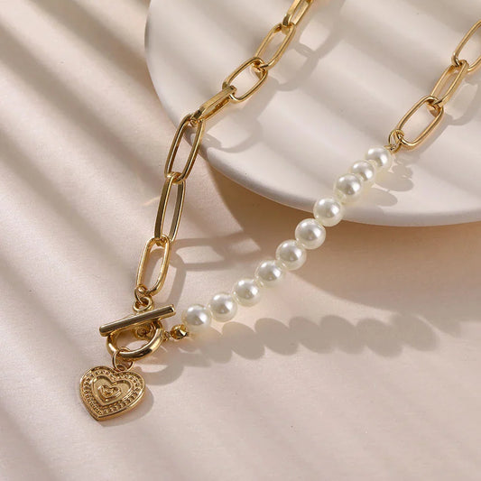 Reduziert 74,80%Gekreuzter Herz-Anhänger mit Perlen in Gold